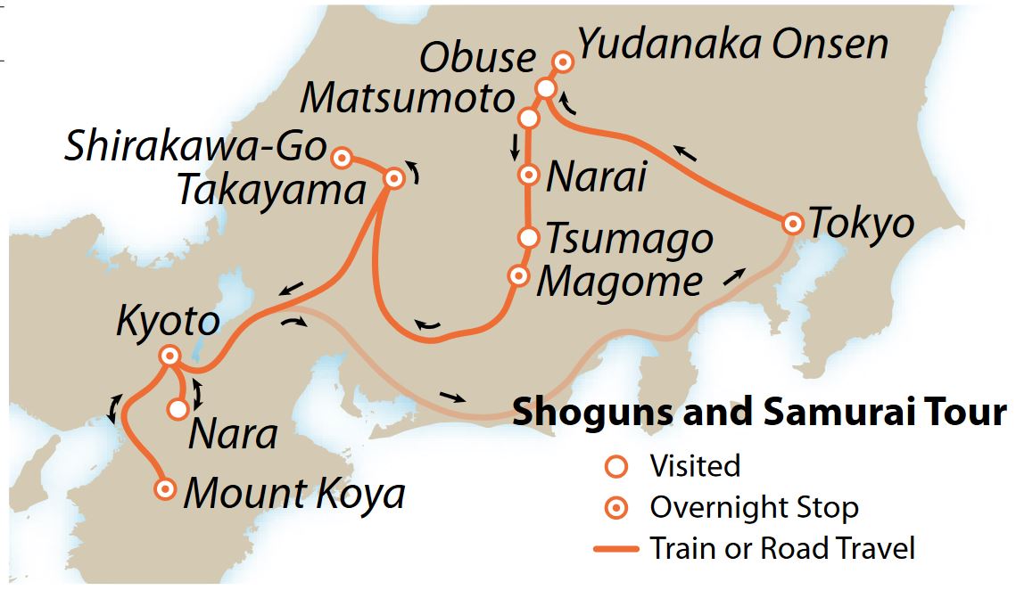 Zentraljapan ist eine Region mit hohen Gebirgszügen und schnell fließenden Flüssen. Bis vor Kurzem erreichten Straßen die entlegeneren Dörfer nicht, und viele von ihnen sind heute bemerkenswert gut erhalten und erinnern an vergangene Jahrhunderte. Unsere Reise führt uns durch die japanische Geschichte, von der modernen Stadt Tōkyō, die während der Herrschaft der Shōgune als Edo bekannt war, bis nach Kyōto, der Hauptstadt Japans für 400 Jahre und ein Schatzkästchen der Kultur des Landes. Von Tōkyō aus fahren wir zuerst nach Yudanaka Onsen, wo die berühmten Schneeaffen die natürlichen heißen Quellen genauso genießen wie die Menschen. In feudalen Zeiten reisten die Menschen von Kyōto nach Tōkyō auf der Nakasendō, der Straße durch die zentralen Berge. Wir besuchen einen der am besten erhaltenen Abschnitte im Kiso-Tal, wo die malerischen Dörfer Tsumago und Magome liebevoll restauriert wurden