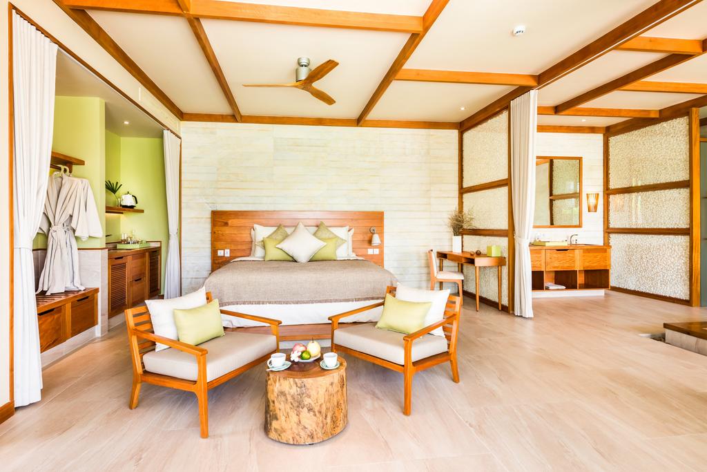 Eingebettet in eine weitläufige, tropische Gartenanlage, direkt am Strand einer einsamen Bucht bietet das Fusion Resort Phu Quoc mit seinen 130 modernen und eleganten Pool-Villen einen schlichten Luxus der seinesgleichen sucht. Im schönen Spa sind alle Behandlungen, Dampfbad, Sauna sowie Yoga, Tai-Chi, Qi Gong und Meditation im Preis inklusive. Kulinarische Abwechslung finden Sie in den Restaurants und Bars des Hotels. Ausserdem gibt es ein gut ausgestatteten Fitnesscenter sowie Fahrrad- und Kaiyakverleih.